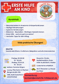 Anmeldung unter: kontakt @erstehilfe-hilfsbereit.de